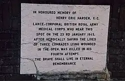 On the bridge near the mill there is a plaque to commemorate Lance Corporal Harden.[1]