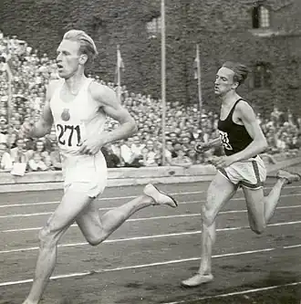 Knut Henry "Krylbo" Eriksson (23 January 1920 – 8 January 2000) was a Swedish middle-distance runner who specialized in the 1500 m event. In 1946 he finished second behind Lennart Strand, both at the national and European Championships. On 15 July 1947, at the national championships at Malmö, Eriksson and Strand had a very close 1500 m race. Strand won, equaling the world record at 3:43.0, and Eriksson finished second, setting his all-time personal best at 3:44.4. Eriksson beat Strand at the 1948 Swedish Championships and at the 1948 Summer Olympics. He retired the same year and returned to his work as a fireman.[2][3][4]