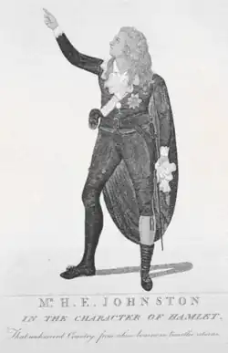 Johnston's first appearance in London took place at Covent Garden Theatre, in Douglas, 23 October 1797. He was praised in the European Review.[4] He remained at Covent Garden, with summer engagements at the Haymarket Theatre, until the season of 1802–3.[3][5]