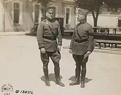 After the U.S. declared war on the German Empire in April 1917, Stimson was one of the 18 men selected by former President Theodore Roosevelt to raise a volunteer infantry division for service in France in 1917. However, President Woodrow Wilson refused to make use of the volunteers, and the unit was disbanded. Stimson subsequently served in the regular U.S. Army in France as an artillery officer and reached the rank of colonel in August 1918. He continued his military service in the Organized Reserve Corps and rose to the rank of brigadier general in 1922.[14]