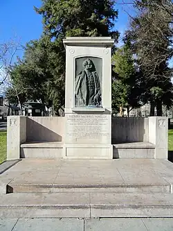 Henry Naglee died of "neuralgia of the bowels" at the Occidental Hotel[4] in San Francisco on March 5, 1886,[14] and was interred in Laurel Hill Cemetery in Philadelphia.[15] His estate was developed into the residential Naglee Park neighborhood in 1902 by his daughters.[16] A memorial was erected in St. James Park in San Jose to honor Naglee.[12]