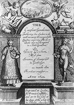 Peacham's The Compleat Gentleman is presented as a guidebook on the arts for young men of good birth. In it, he discusses what writers, poets, composers, philosophers, and artists gentlemen should study in order to become well-educated. Because he mentions a large number of contemporary artistic figures, he is often cited as a primary source in studies of Renaissance artists.