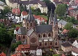 Heppenheim (Bergstraße) (German pronunciation: [ˈhɛpn̩ˌhaɪm] ⓘ) is the seat of Bergstraße district in Hesse, Germany, lying on the Bergstraße on the edge of the Odenwald. It is best known for being the birthplace of Sebastian Vettel, a four-time Formula One World Champion and the place of founding of the Free Democratic Party (Germany).