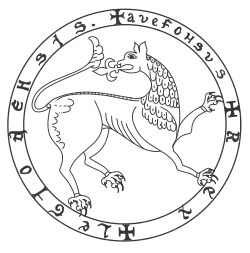 Alfonso VII's use of the lion as a heraldic emblem for León predates the earliest surviving Royal Arms of England, a single lion visible on a half-shield depicted on the First Great Seal (1189) of Richard I,[11] as well as the three pale blue lions passant of Denmark (ca. 1194),[12] the heraldry of the Holy Roman Empire (ca. 1200)[13] and the French fleurs-de-lis coat (1211)[14] although the fleur-de-lis was present on royal robes and ornaments since at least 1179.[15]