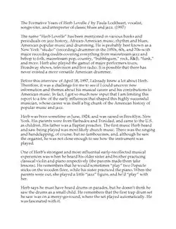 - Paula Lockheart "The Formative Years of Herb Lovell" (1997)