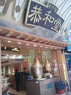 Until the late 1960s, herbal tea shops acted as a semi-public space where the public could go for entertainment. As there were jukeboxes in the shops, it was common for the public to spend their leisure time in the shop socializing with friends or simply enjoying the music and the atmosphere.[1] Apart from this development, some of the shops opened near cinemas so they could attract cinema-goers with their snacks such as fish balls.