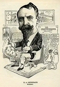 Herbert A. Linthwaite (June 17, 1858, Indiana – December 31, 1929, Los Angeles) was an American architect and a member of the AIA Columbus.[2] Born in Indiana, Linthwaite rose to prominence as an architect in Columbus, Ohio from 1879 to 1911, when he moved to Los Angeles. In 1922, he built the Garber House; it became a Los Angeles Historic-Cultural Monument in 2007.[3] He married Sara De Long in September 1879[1] and died in Los Angeles in 1929.[4]