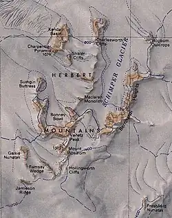 The Herbert Mountains (80°20′S 25°30′W / 80.333°S 25.500°W) are a conspicuous group of rock summits on the east side of Gordon Glacier in the Shackleton Range of Antarctica. They were first mapped in 1957 by the Commonwealth Trans-Antarctic Expedition and named for Sir Edwin S. Herbert, Chairman of the Finance Committee and a Member of the Committee of Management of the expedition, 1955–1958.[1]