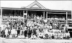 In July 1881, the residents of Herberton had raised £115 for the construction of a school. Herberton Provisional School opened on 12 December 1881 with 35 students in the Herberton Hall; the fee was one shilling per week for the first child of a family with an additional sixpence a week for each additional child.[6][7] In October 1882 the Queensland Government reserved five acres and two roods for a state school and called for tenders to erect a state school and teacher's residence.[8][9] In November 1882 the contract for the buildings was awarded to James Pasley to construct the buildings using hardwood in nine months for £2,040.[10] In April 1883 the Queensland Government officially announced that there would be a new state school in Herberton.[11] The actual opening date of the new state school is unclear but Thomas Peter Wood was appointed headmaster of Herberton State School from 1 January 1884, so the school was operational at that time.[12] In 1912 the school was one of the first five schools in Queensland to receive a secondary department, commencing operations on 15 February 1912 with the arrival of the teacher Miss Ramsay B.A. who would teach two languages, English history, mathematics, and science.[13] In 1994, a new primary school campus was established with the secondary department remaining on the original school site.[14]