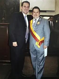 His campaigns brought him closer to Uribismo, the conservative movement that opposed negotiations with the FAEC, created around former president Álvaro Uribe (2002-2010). While in exile he was a kind of spokesperson for the failed efforts to repeal the Special Jurisdiction of Peace (JEP), the agreements signed by the government of Juan Manuel Santos (2010-2018).[3]