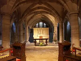 Though the crypt is small, it is of special interest, as it is Gothic rather than Norman. Its use as a charnel house resulted in the name Golgotha.