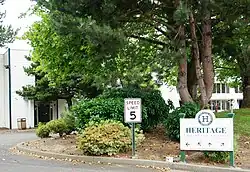 Classes the first year were held in local churches as four former office buildings were converted to classrooms.[7] These buildings were located at an office complex near Tualatin Valley Highway and River Road in southeast Hillsboro.[5][7] Heritage expanded by adding a new grade to the school each year.[6] Academics included regular classes, plus courses in Latin, rhetoric, and logic.[8] Enrollment stood at 98 in 1999,[6] and by 2003 the school grew to 140 students.[9] In 1999, the high school was added and the first class graduated in 2002.[6] Republican politician Eileen Qutub, a former Oregon State Senator and member of the Oregon House of Representatives, worked for the school until February 2004 as their director of advancement.[10][11] Heritage grew to include the sixth grade, and had 141 students in all grades in 2004.[7]