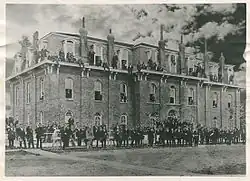 The structure has bridged several eras in the history of a school that was founded in 1859 as the Valparaiso Male and Female Academy, one of the first coeducational institutions in the United States. It was in 1873 that the school, as the Northern Indiana Normal School, "Mr. Brown's School," began to flourish and achieve a national reputation. It was renamed Valparaiso College in 1900 and rechartered as Valparaiso University in 1907.[6] The building of a dormitory reflected the growing success of President Henry Baker Brown who had brought to American higher education a philosophy that emphasized the offering of practical training to meet the wants of students and the making of such an education, vocational as well as liberal arts, available at a cost which reflected a democratic view. With a faculty that was thorough, and with a student life which emphasized character development, this practical approach to curriculum, offered at the low cost of $8.00 a term, soon attracted an enrollment that was second only to that of Harvard University.[6] The most famous resident of Heritage Hall was George W. Norris, who served as United States Senator from Nebraska 1913 to 1943. Mr. Norris remembered the dormitory as a "large three-story building, which provided furnished rooms and board for men for $1.40 a week."[6]