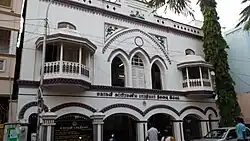 Heritage buildings are defined as notified structures of historical, architectural, or cultural significance.[6] The heritage activism in the city began with the erstwhile Moore Market building fire in 1985.[7] In 1997, the state government initiated action to conserve heritage buildings. In 1998, a committee headed by Director of Town and Country Planning was constituted by the government to investigate aspects related to enactment of the Heritage Act.[8] In 1999, the committee submitted the draft of Tamil Nadu Heritage Conservation Act. In the same year, Chennai Metropolitan Development Authority (CMDA) constituted a Heritage Conservation Committee to draft regulations to conserve heritage buildings and precincts in the Chennai Metropolitan Area (CMA).[8] After the second master plan for the city was approved by the government on 2 September 2008, special rules for conservation of heritage buildings/precincts came into force.[6] In 2010, the criteria for listing the heritage structures in the CMA region was finalised, and in 2011, the process of assessment and documentation of heritage structures began.[8] A 17-member Heritage Commission was set up in May 2012 to maintain these structures, after a fire accident in Kalas Mahal, a 244-year-old heritage building in front of Marina beach.[9] As per the Commission's mandate, heritage buildings that are listed will get incentives, such as exemption from payment of taxes, and offenders who deface or destroy them will face penal action.[1]