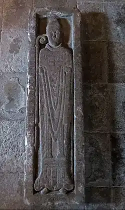 Following Eskil's appointment as archbishop, subsequent changes among the heads of the Danish dioceses meant that the position of bishop of Schleswig also became vacant.[7] Perhaps as a reward for his services to the archdiocese of Lund, Hermann was appointed. The local clergy of Schleswig had however in 1137 independently elected Occo of Schleswig as their bishop and refused to accept Hermann.[7][8][6] Despite having the support of the king, Hermann had no choice but to return to Lund and would remain there for the rest of his life, serving as a canon at the cathedral.[6][9] In 1139 he participated in a synod in Lund as titular bishop of Schleswig but by 1145 he had resigned his claims to the diocese.[6] His tombstone in the crypt of Lund Cathedral nevertheless depicts him in the full dress of a bishop, with alb, dalmatic and chasuble. An inscription around the edge of the stone identifies him as bishop of Schleswig.[10]