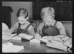 - ^ Lee, R., photographer. (1941) Children of workmen at the Umatilla ordnance depot attend school in basement of church, use long tables as desk. Hermiston, Oregon. Umatilla County United States Hermiston Oregon Hermiston, 1941. Sept. [Photograph] Retrieved from the Library of Congress, https://www.loc.gov/item/2017816038/.