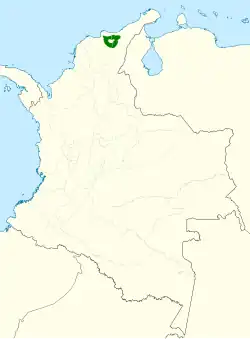 The hermit wood wren is found only in the Sierra Nevada de Santa Marta, an isolated mountain range in northern Colombia. It inhabits humid montane forest between approximately 2,000 and 4,000 m (6,600 and 13,100 ft) of elevation.[5]
