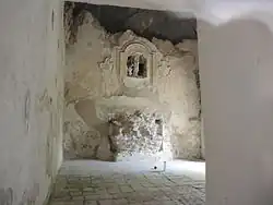 The residential area next to the church was organized on two floors.[1] It is in a state of ruin, but the perimeter walls remain.[1] The first floor had two windowless rooms used as a stable or woodshed, while the upper floor, paved with terracotta tiles, was used as a dormitory.[1]