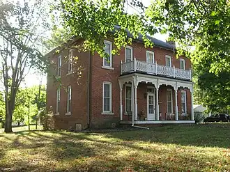 Herriott House, also known as the Brown-Ritchey House, is a historic home located in Franklin, Johnson County, Indiana. The house was built between 1860 and 1865, and is a two-story, rectangular, Italianate style brick dwelling with a hipped roof. It features an elaborate wooden front porch added between 1876 and 1884 (rebuilt 1981) and overhanging eaves with decorative brackets.[2]: 2