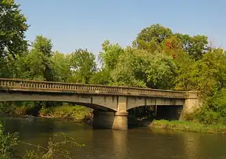 The Herrold Bridge is a historic structure located near the unincorporated community of Herrold, Iowa, United States. It carried a gravel road for 156 feet (48 m) over Beaver Creek.[2] Completed in 1921, this concrete cantilevered deck girder bridge replaced an earlier timber pile structure. It was designed by the Iowa State Highway Commission the previous year, and the Polk County Board of Supervisors awarded the construction contract to Ben Cole of Ames. The total cost of construction was $24,283.36. The bridge features three arched concrete deck girder spans that are cantilevered from concrete abutments and piers. It is considered one of the most technologically significant of Iowa's concrete girder bridges.[2] The bridge was listed on the National Register of Historic Places in 1998.[1] The Herrold Bridge remains in place but was replaced by a newer span slightly downstream.
