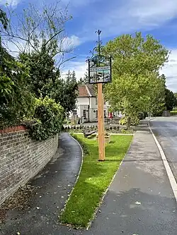 Both Hertingfordbury Park, former residence of the Cowper family, and St Joseph's in the Park, a private primary school, stand to the east of St. Mary's.[9] Houses in the village include "Epcombs", a Georgian brick house and "Amores", which stands in a triangle in the centre of the village and is over 500 years old. A little to the south of the main village is "Roxford House" on St. Mary's Lane, a Grade II Listed Building, where Austrian composer Joseph Haydn stayed for the summer of 1791.[10][11] The White Horse is a 15th-century Georgian-fronted building that in the past was a staging post for the Reading to Cambridge coach. To the north-east of the church is the Old Rectory, formerly home of the Addis family, descendants of William Addis, inventor of the first mass-produced toothbrush. There was an Addis brush factory in Hertford from 1920 to the 1990s.