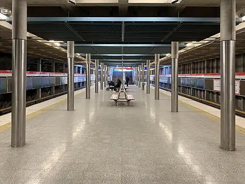 Herttoniemi metro station (Finnish: Herttoniemen metroasema, Swedish: Hertonäs metrostation) is a ground-level station on the Helsinki Metro.[2] It serves the district of Herttoniemi in East Helsinki. There are 193 bicycle and 148 car parking spaces at the station.[3] Both lines M1 and M2 serve Herttoniemi.