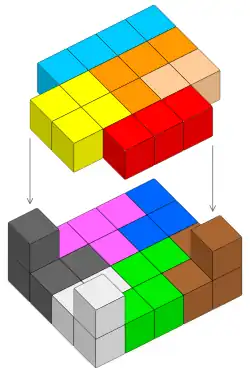The Herzberger Quader is a solid dissection puzzle invented by German mathematics teacher Gerhard Schulze.[1] It was named after his home-town Herzberg, and Quader is the latin-derived German word for a rectangular cuboid.