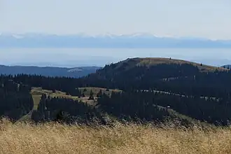 The Herzogenhorn seen from the Feldberg. The Alps may be seen in the far distance. | |