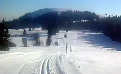 The mountain is already mentioned in a 1328 scroll as "des herzogen horne" as a point on the boundary of the abbey of St. Blaise[3] The first primitive fortifications probably date to the time around the Thirty Years' War, whilst the construction of the fortification line of schanzen on the mountain is attributed to Margrave Louis William, "Turkish Louis".[4] In 1904, the Mannheim branch of the Black Forest Club built the Mannheim-Ludwigshafen Hut, but this burned down on 28 January 1911.[5] The Herzogenhorn inn was bought in 1957 from the Black Forest Ski Club, was converted and then opened on 22 October 1967 as the new National Training Centre.[6] On 1 January 1979, the first 5 km, ladies cross-country skiing World Cup races in Europe took place on the Herzogenhorn after the Brend ski club had to move due to lack of snow.[7] During the Second World War, military exercises were carried out on the Herzogenhorn and Baldenweger Buck, for example for snipers.[8] In the vicinity of the National Training Centre is the Molerhüsli in which Freiburg artist, Karl Hauptmann, lived and worked from 1920 until his death in 1947. Another artist who worked on the Herzogenhorn worked was Wilhelm Heimer Wickert (1886-1968).[9]