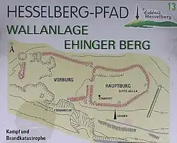 Hesselberg was used as a shelter and dwelling in prehistoric times. Archaeological artefacts from the Stone Age (approx. 10,000–2000 BC) have been found mainly on the Osterwiese. In the Bronze Age (approx. 2000–1300 BC) it was constantly settled. In the Urnfield time (approx. 1200–750 BC) the colony at the plateaus was surrounded with curtain walls, and moats. Even today the 5 km long remains of the border walls around the Osterwiese, the Ehinger mountain, and the Gerolfinger mountain provide an idea of the importance of these fortifications. Behind this sheltering stonework an important political, economic, and religious center evolved. For a long time these constructions were thought to be of celtic origin, but only one artefact (the weapons of a warrior) from the La Tène period (500–15 BC) indicates any Celtic involvement. In the restless Migration Period and during the Middle Ages the walls of Hesselberg were used as a shelter and for defensive purposes. The city museum of Oettingen and the museum for pre- and early history in Gunzenhausen contains many exhibits such as tools and weapons.