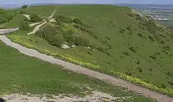 - The western plateau, also called Gerolfinger mountain, has an especially unspoilt appearance with its sinkhole-like depressions, hedges and shrubs. The depressions were, however, not formed naturally, they are the result of mining of material for road construction and lime burning.