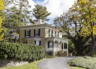 Hexagon House is a historic home in Winchester, Virginia built between 1871 and 1873 and is a two-story, hexagon floor-plan, brick dwelling, with semi-hexagonal ground-floor projections and an ornate three-bay veranda-style porch on the principal façade. It has a central chimney and is topped by dark red, low-pitched roofs extending to substantial white cornicing.[3]