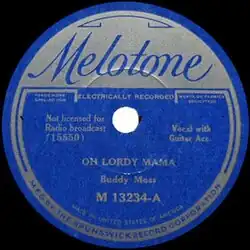 After Moss' single, similar versions followed: "Oh Lawdy Mama" by Curley Weaver[5][6] and "Hey Lawdy Mama" by Bumble Bee Slim.[7] Jazz artists, such as Count Basie (1938),[8] Louis Armstrong and his Hot Seven (1941),[9] and Noble Sissle and His Orchestra with Edna Williams (vocal and trumpet)[10] recorded it as "Hey Lawdy Mama". These were released before Billboard magazine or a similar service began tracking such releases, so it is difficult to gauge which of these versions was the most popular, although Bumble Bee Slim's title is the one most commonly used on later versions (and often credited to Slim, also known as Amos Easton).[11] Moss recorded a sequel "Oh Lordy Mama No. 2".[12]