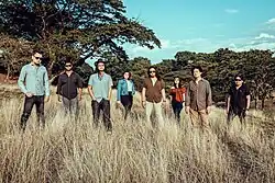 Hey Moonshine was formed in 2016.[1] Guitarist Bryan Gatmaitan and vocalist Gian Sison met through a common friend. They started out as a five-piece band with Carlo Ybanez on bass, Ton Gregorio on guitars and Shaun Hilario on drums.[2] Their first performance was at the "Concert at the Park" in Rizal Park, Manila.[3] After a visit to the United States by Gatmaitan, Aris Sison was added to the band as a guitarist. The band then decided to expound on their southern, soulful sound by including two female back-up vocalists Angela Rivera and later on, Athena Mae.[2] Early in their career, they played in different local bars and several events such as the Fete De La Musique.[4]