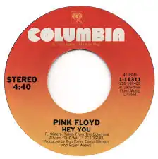 "Hey You" is a song by the English rock band Pink Floyd,[1] released on their 1979 double album The Wall.[2] It also appeared as the B-side to the "Comfortably Numb" single in 1980. The song, along with "The Show Must Go On", was edited out of Pink Floyd – The Wall to prevent the film from running too long; however, a rough version is available as an extra on the 25th Anniversary Edition DVD of The Wall.