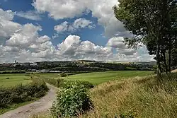 Suburban localities in Heywood include Broadfield, Captain Fold, Crimble, Darnhill and Hopwood.[22] Hopwood was formerly a township of itself, but was amalgamated into Heywood in the 19th century. Darnhill is the site of a planned overspill council estate, built in the 1950s and 1960s as part of a slum clearance project throughout inner-city Manchester.[26] Heywood's population increased when thousands of people were moved out of Manchester's slums and into what was then the Heywood countryside of Darnhill.[26]