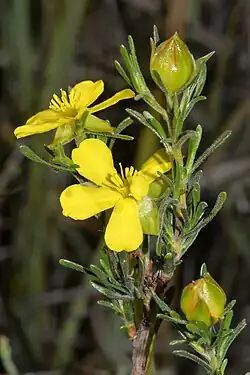 Hibbertia inclusa is a species of flowering plant in the family Dilleniaceae and is endemic to the south-west of Western Australia. It is an erect, spreading shrub that typically grows to a height of 20–90 cm (7.9–35.4 in).[2] It was first formally described in 1863 by George Bentham in Flora Australiensis from specimens collected from the Swan River Colony by James Drummond.[3][4] The specific epithet (inclusa) means "enclosed", referring to the flowers being enclosed in floral bracts.[5]