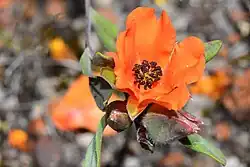 Hibbertia miniata, commonly known as orange flower,[2] is a small species of shrub in the family Dilleniaceae and is endemic to Western Australia.