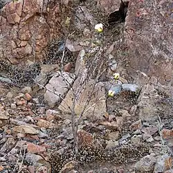Hibiscus coulteri, is well-adapted to dry desert environments. It has hairy-like leaves that help conserve water, and its yellow flowers, which have reddish centers, bloom mainly after rain.[1] These species are very important when it comes to being pollinators during dry periods.[2] Although having a short life, Hibiscus coulteri is great for landscapes with dry areas because it can grow with very little water.[1]