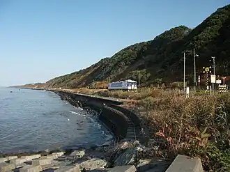 The Hidaka Main Line (日高本線, Hidaka-honsen) is a railway line in Hokkaido, Japan, operated by Hokkaido Railway Company (JR Hokkaido), between Tomakomai Station in Tomakomai and Samani Station in Samani, running along the coast of Hidaka Subprefecture. Services on the 116.0 km (72.1 mi) section of the line beyond Mukawa Station were suspended indefinitely since January 2015 due to storm damage. This section was closed on 1 April 2021 and replaced by a bus service. The closure of this section made the line the second shortest in Japan to be classified as a 'main line', at just 30.5 km (19.0 mi), after the Rumoi Main Line's length of 14.4 km (8.9 mi).