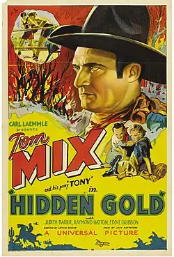 Hidden Gold is a 1932 American Western film directed by Arthur Rosson and written by James Mulhauser and Jack Natteford. The film stars Tom Mix, Judith Barrie, Raymond Hatton, Eddie Gribbon, Donald Kirke and Wallis Clark. The film was released on November 3, 1932, by Universal Pictures.[1][2][3]