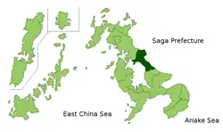 Higashisonogi (東彼杵郡, Higashisonogi-gun) is a district located in Nagasaki Prefecture, Japan. The towns of Hasami, Higashisonogi, and Kawatana are located within the district.