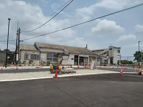 Before the construction and opening of Higashiura Station, Owari-Ikuji Station (6.0 km from Obu) and Fujie Station (7.2 km from Obu) existed in North and South of the station.[1]