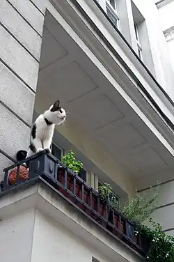 High-rise syndrome is a veterinary term for injuries sustained by a cat falling from a building,[1] typically higher than two stories (7–9 m (23–30 ft)).