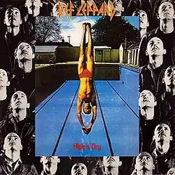 High 'n' Dry is the second studio album by the English rock band Def Leppard, released on 6 July 1981.[6] High 'n' Dry was Pete Willis' last full-time album with Def Leppard. It charted at No. 38 on the Billboard 200[7] and No. 26 on the UK Albums Chart.[8] "High 'n' Dry (Saturday Night)", ranked No. 33 on VH1's 40 Greatest Metal Songs.[9] Following the success of Pyromania, the album re-entered in the US chart and reached No. 72 in 1983.[7]