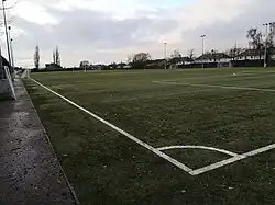 On the eastern periphery of Burnside, Stonelaw High School has a 'Community Wing' with sports facilities and hall as well as an AstroTurf football pitch,[58][59] installed adjacent to the school's new buildings a year before the move was completed in 1998[60] – this land was previously the recreation grounds for the James Templeton & Co textile company in Glasgow,[61] and the bowling club bearing the Templeton name at that location continues on its own.[62] Burnside Bowling Club (1909) is located next to the old Burnside tennis courts[63] and there are other bowling clubs on the border with central Rutherglen (on Stonelaw Road and in Overtoun Park).[64][65]