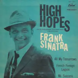 "High Hopes" is a popular song first popularized by Frank Sinatra, with music written by James Van Heusen and lyrics by Sammy Cahn.[1] It was introduced by Sinatra and child actor Eddie Hodges in the 1959 film A Hole in the Head, was nominated for a Grammy, and won an Oscar for Best Original Song at the 32nd Academy Awards.[1]
