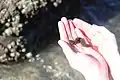 Eggs are laid between rocks and shells and guarded and fanned by the female.[3]