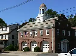 The Highland Hose House is a historic fire station at 1007 Massachusetts Avenue in Arlington, Massachusetts. The two story brick building was built in 1928 to a design by George Ernest Robinson. His Georgian Revival design emulates features found in Boston townhouses of the late 18th and early 19th centuries, and its cupola and grasshopper weathervane resemble that of Faneuil Hall. The station includes a bronze relief of former Chief Charles Goff, executed by noted Arlington resident Cyrus Dallin.[2]