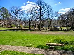 Highland Park is a hilly and wooded area, and contains a number of historic urban parks, among them Underwood, Rhodes, Caldwell, and Rushton Parks. Highland Avenue, the main boulevard, was laid out in the late 19th century when Highland Park was a suburb outside the city limits of Birmingham, and runs along the foothills of Red Mountain. The broad, winding corridor, among the most scenic and pleasant in the city, is nearly level. Prior to the 1930s, street cars ran in both directions along the length of Highland Avenue and into downtown Birmingham. Historic Highland Park Golf Course, also named Boswell Park for the famed blind golfer Charley Boswell, is the oldest golf course in Alabama and the site of some of Robert "Bobby" Jones' first victories, and lies at the eastern end of Highland Avenue.